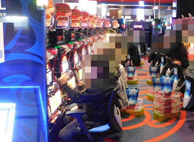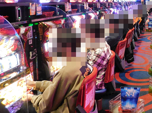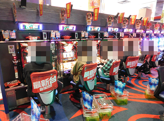 14時過ぎのホール内には、たくさんのプレイヤーが集まっており、さまざまな機種が活況となっていた。