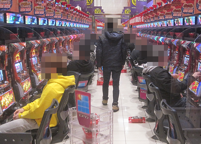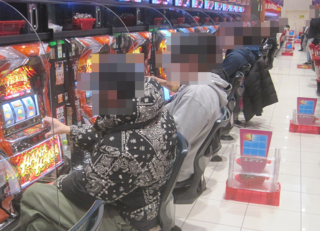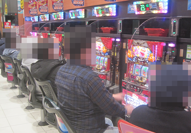 盛況となっている場所がいくつもあるなかで、とくに目立っていた『マイジャグラーV』!