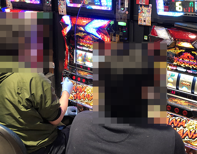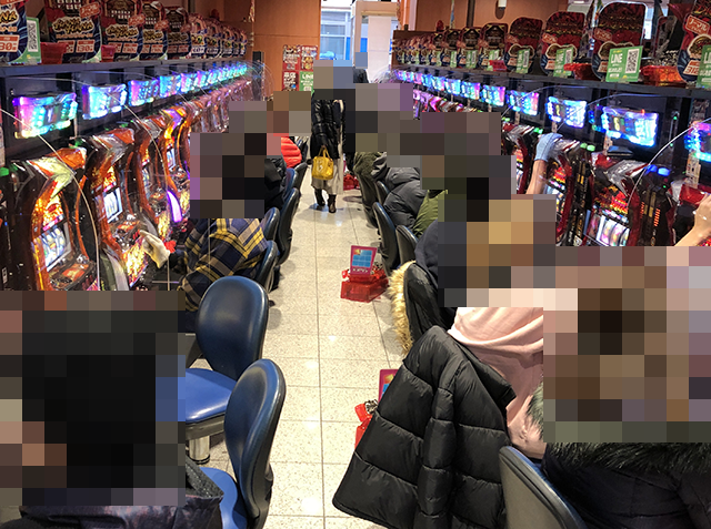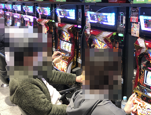楽しそうに遊技をおこなっている姿が並んでおり、どちらの機種も活況となっていた。