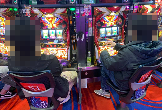 店内を進んでいくと、パチンコとパチスロの両方で笑顔のプレイヤーを目にした。