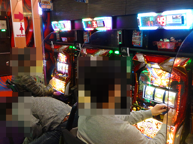 また、「ハナハナホウオウ~天翔~-30」は低貸し玉コーナーにも設置されており、明るい表情で遊技をおこなっている姿があった。