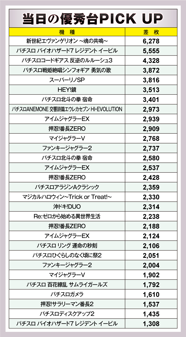 ※評価ptは「+千枚超1台につき1pt ÷ 台数」。つまり優秀台の割合となります。