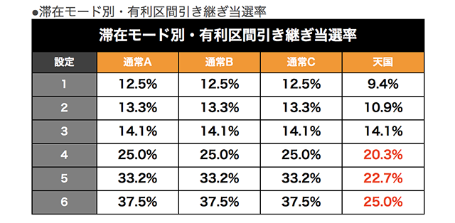 有利区間移行時のAT直撃確率に大きな設定差が設けられている。