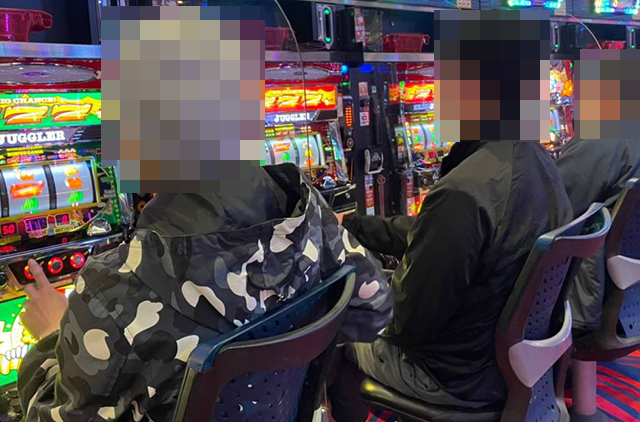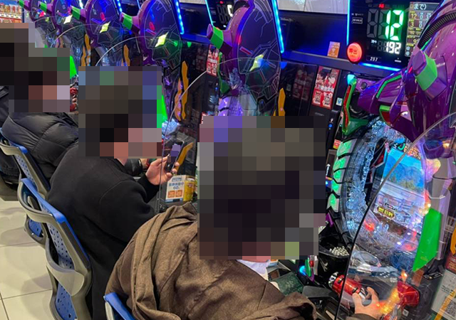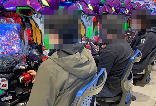笑顔で遊技をおこなっているプレイヤーがならび、ひときわ目立つ場所となっていた。