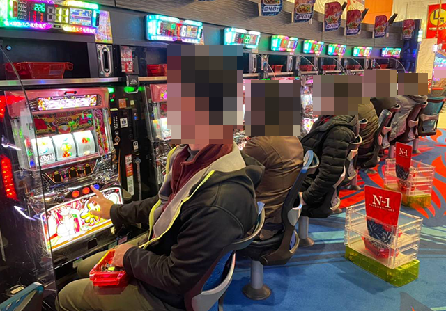 パチンコ・パチスロともに楽しげな姿がみられ、ホール内は明るい雰囲気。「エヌワン新富町店」には、たくさんの笑顔が広がっていた。