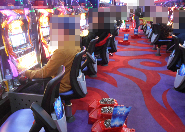パチスロコーナーをみてみると、ハナハナシリーズのにぎわいがとくに大きかった。