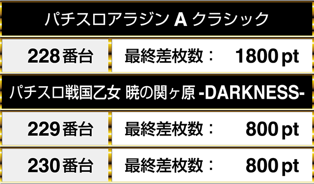 『パチスロアラジンAクラシック』の1台が1800pt!