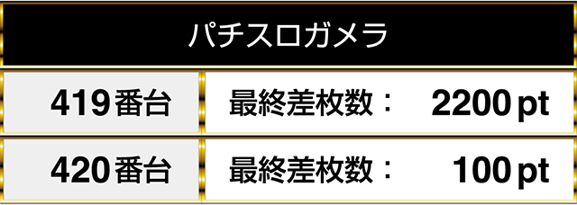 『パチスロガメラ』にもプラスptが並ぶ場所があり、1台は2000pt以上を記録した。