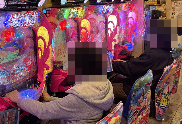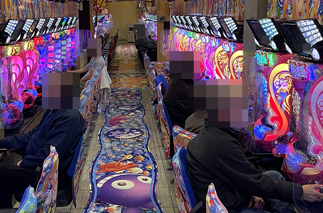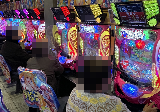 夕方頃のホール内をみると、プレイヤーたちが楽しそうに遊技をおこなっており、さまざまな機種が明るいムードに包まれていた。