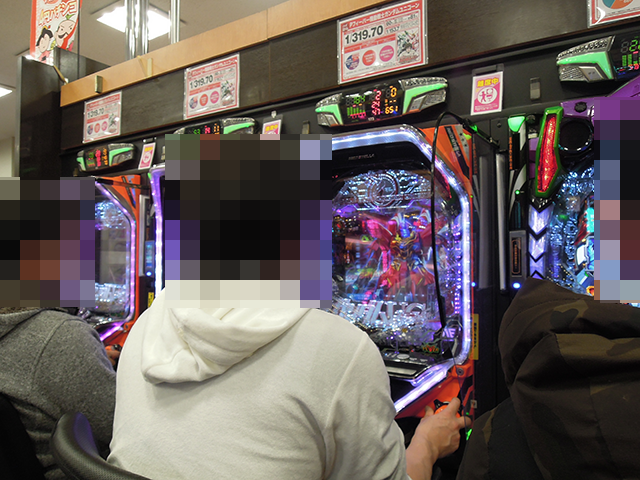 「Pフィーバー 機動戦士ガンダムユニコーン」をはじめ、さまざまな機種が支持されていた「ディーズクラブ水原」。パチンコとパチスロの両方で、遊技を満喫しているといった姿をたくさんみられた。