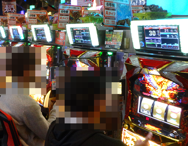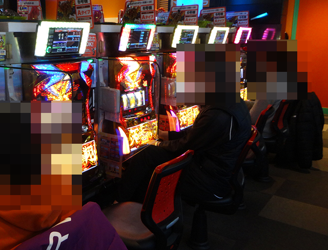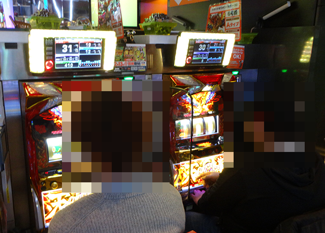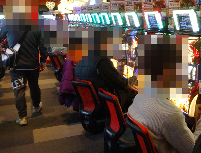15時半頃にホール内をまわっていると、パチンコとパチスロの両方から活気が感じられた。