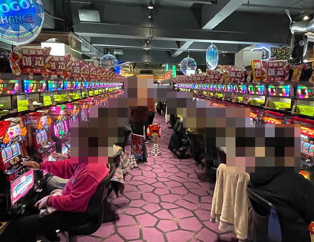 夕方頃のホール内をみてみると、さまざまな機種に遊技を満喫しているといった姿があった。