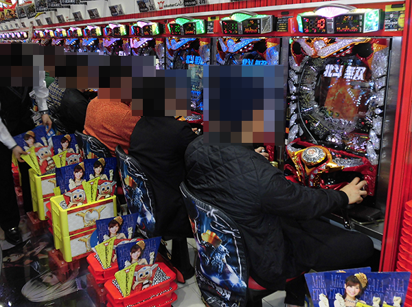 15時頃の4円パチンコをみると、新台の「ぱちんこCR真・北斗無双」がほぼ満席と大盛況。ほとんどのプレイヤーが笑顔で遊技をおこなっており、なかには大満足といった姿もみられた。