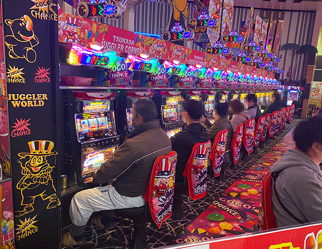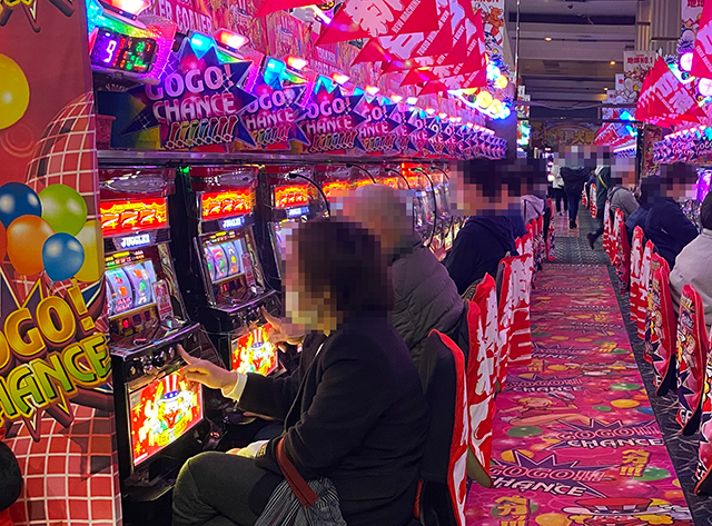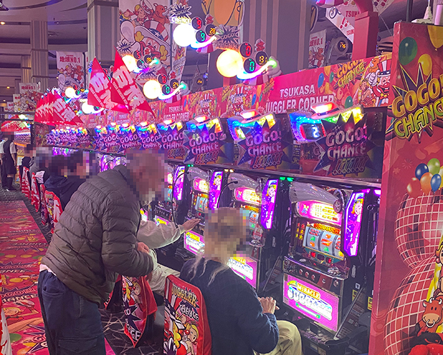 スロ総台数が334台と大ボリュームなこともあって、この日のスロ稼働は今いち。