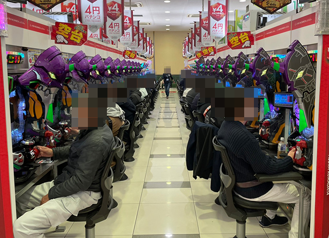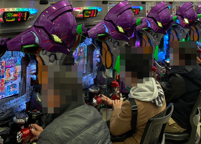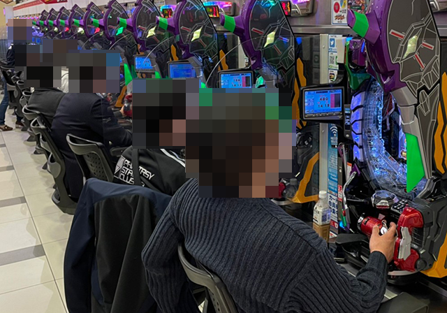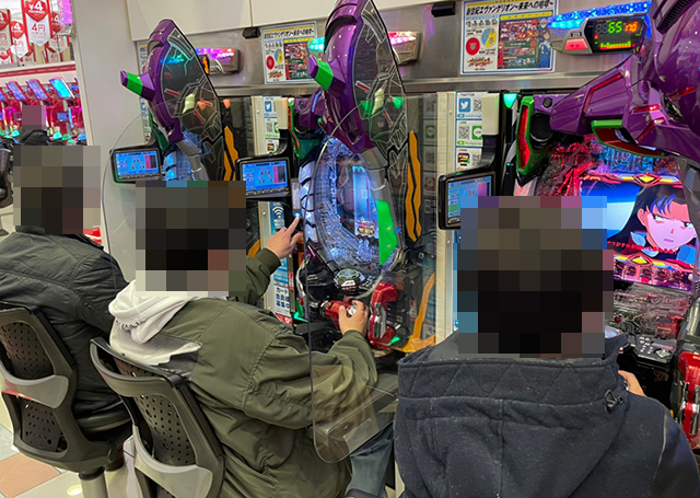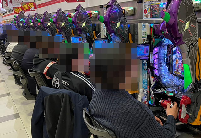 19時頃にパチンコをみると、ミドルタイプから遊パチまで、幅広いスペックの機種でプレイヤーが活躍。明るい表情で遊技をおこなっている姿が多く、どのシマも大きくにぎわっていた。
