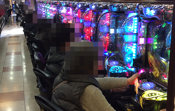 15時過ぎの4円パチンコをみると、新台の「ぱちんこCR真・北斗無双」が満席と支持を集めていた。