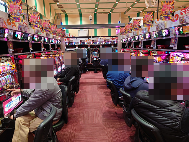 おなじ機種がまとまって並んでいる場所だけではなく、さまざまな機種が設置されているシマからもにぎわいが伝わってきた。