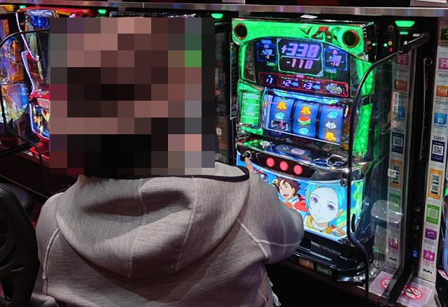 なかでも、「パチスロ交響詩篇エウレカセブン3 HI-EVOLUTION ZERO」で遊技をおこなっている姿がひときわ楽しげであった。