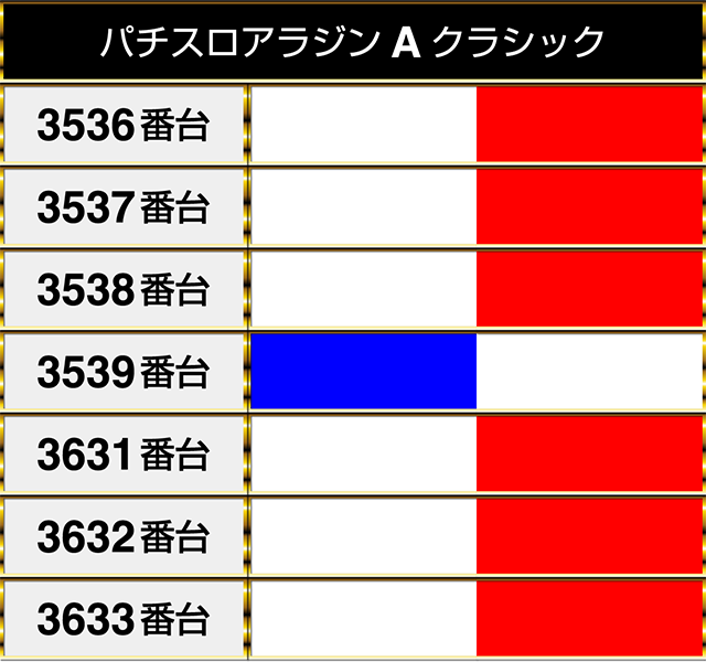 『パチスロアラジンAクラシック』でも2箇所に3台並びでプラスptとなる場所があった。