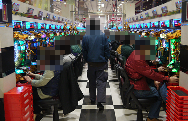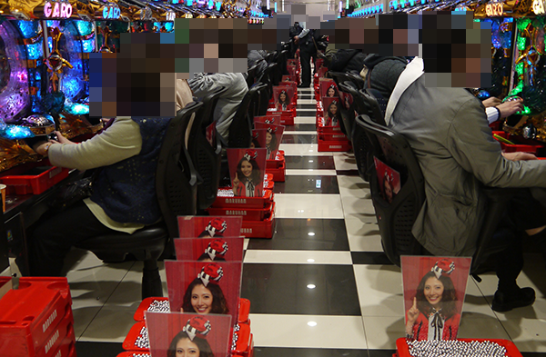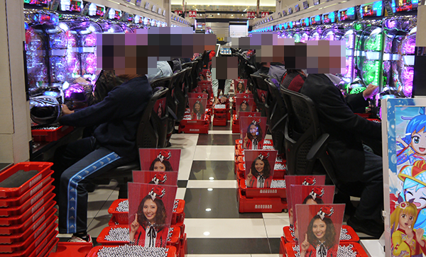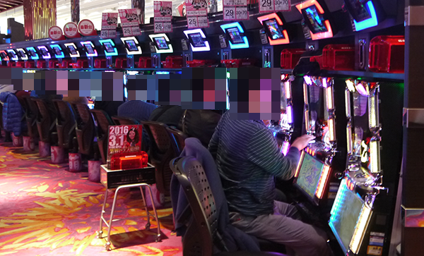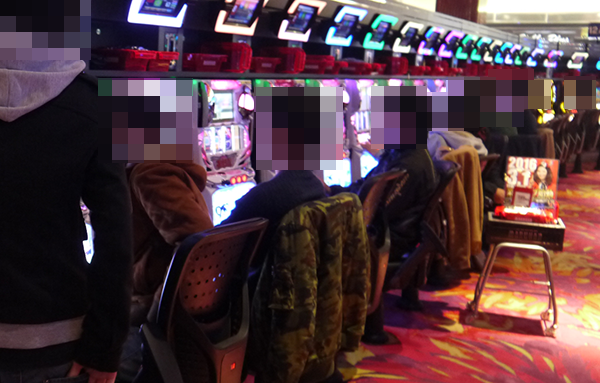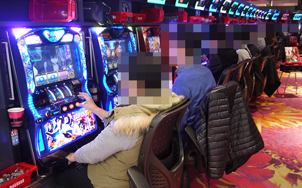 15時頃の20円パチスロをみると、「バジリスク~甲賀忍法帖~絆」や「SLOT魔法少女まどか☆マギカ」といった朝から人気のある機種では、たくさんのプレイヤーが笑顔になっていた。