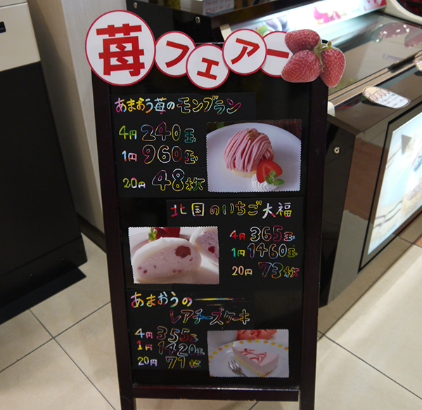 また、苺のケーキといった季節のスイーツや日用品など、幅広いラインナップの景品コーナーも魅力的。