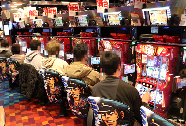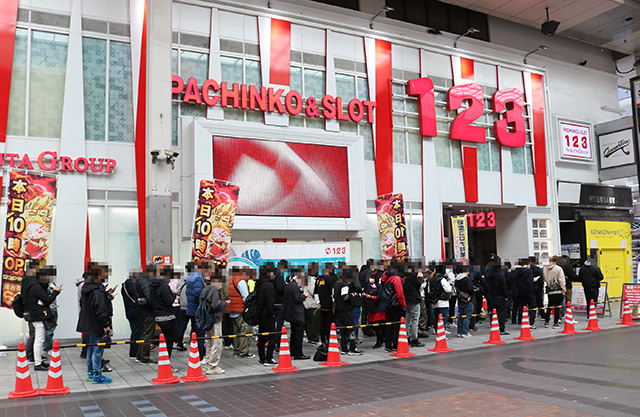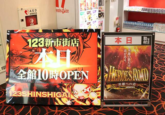123新市街店での「ヒーローズ・ロード」の日は、毎回パチスロコーナーから優秀台を確信させるに十分な光景が生まれている。