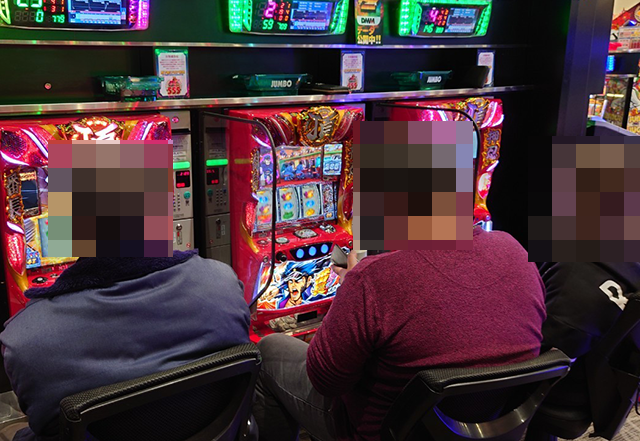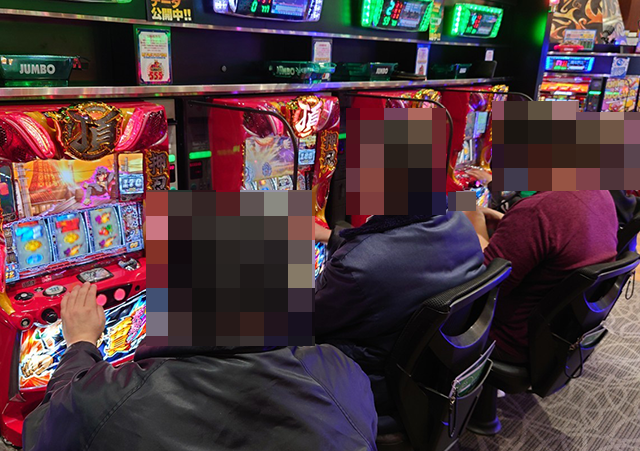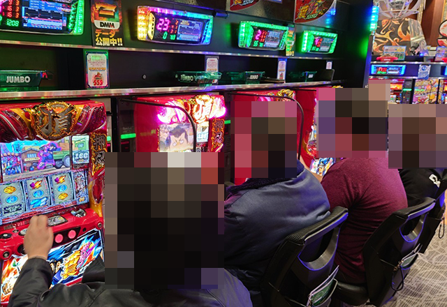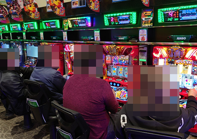 パチスロのにぎわいが大きく、随所に遊技を満喫しているようなプレイヤーがみられた。