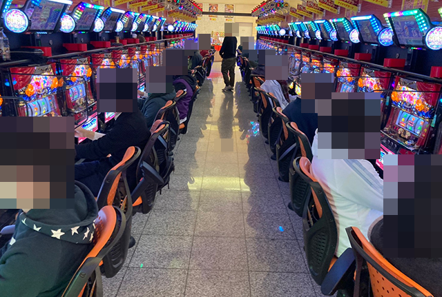 パチスロとパチンコの両方に、遊技を満喫しているような姿があり、ホール全体から華やかな雰囲気が感じられた。