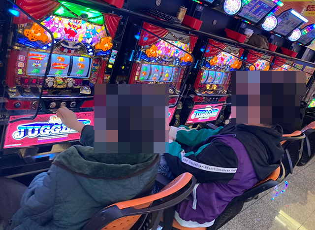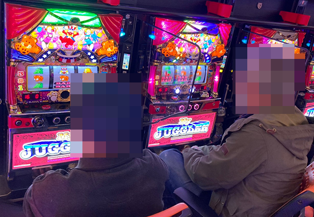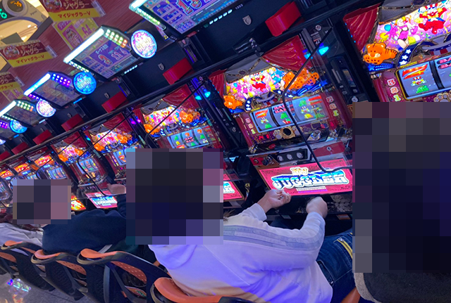 パチスロのシマを進んでいくと、25台が設置されている「マイジャグラーV」に目をひかれた。