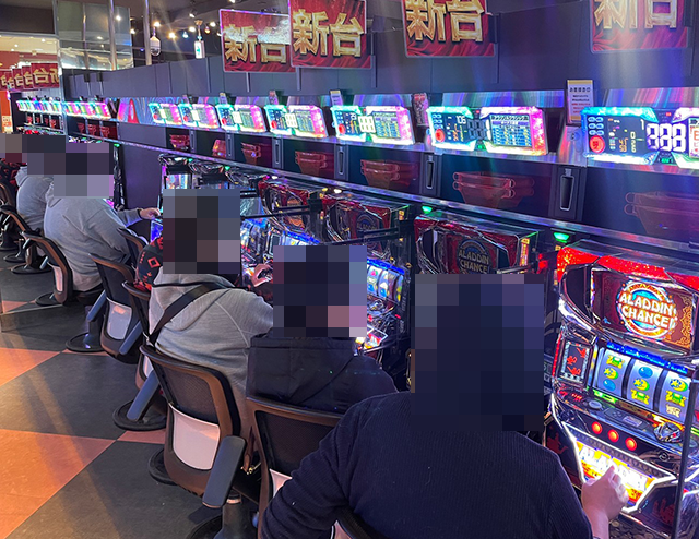 まだまだ新台の「パチスロアラジンAクラシック」も空き台なし&明るい雰囲気!