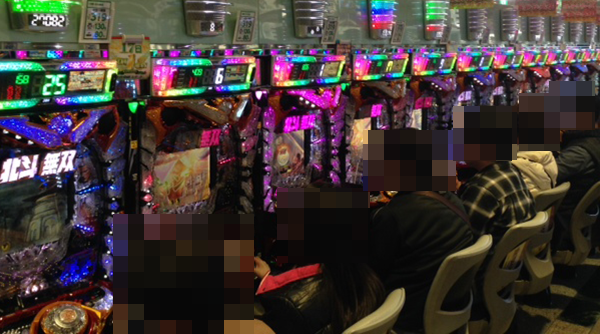 4円パチンコでは、新台の「ぱちんこCR真・北斗無双」がほぼ満席とにぎわいをみせていた。