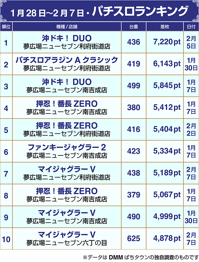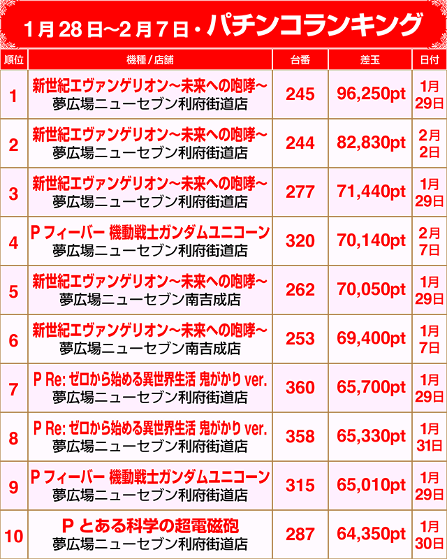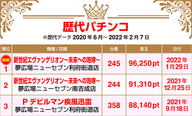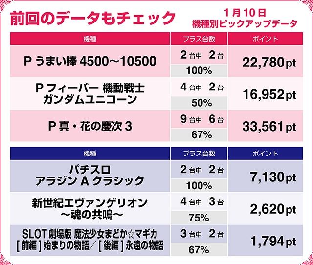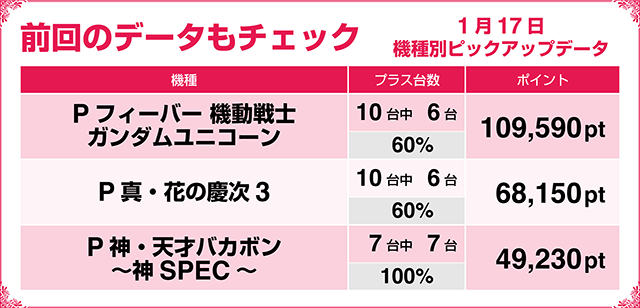 パチンコにて歴代ランキングの1位に食い込む好調台が登場するなど、魅力的なデータが揃った10日間!!