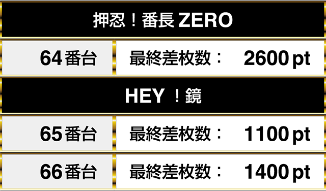 2機種を通してプラスptが連なる場所は、『押忍!番長ZERO』と『HEY!鏡』にもあった。