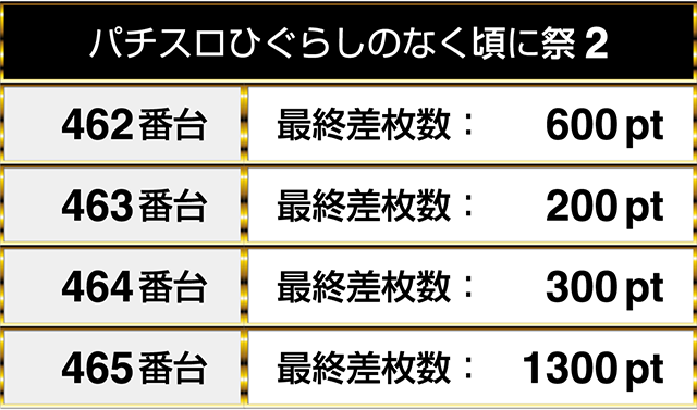 『パチスロひぐらしのなく頃に祭2』は4台が並んでプラスptを記録し、そのうちの1台は1300pt!