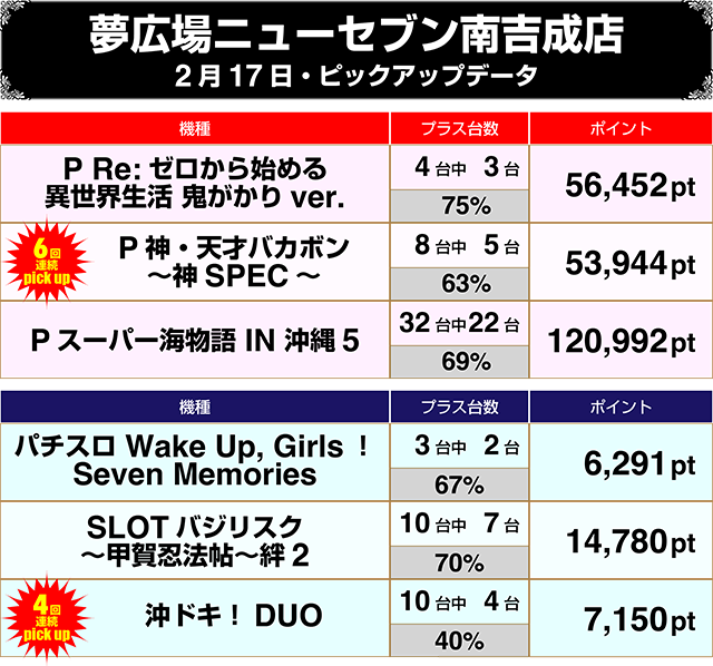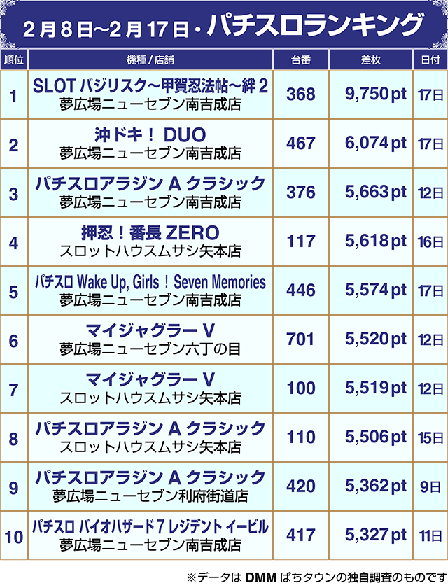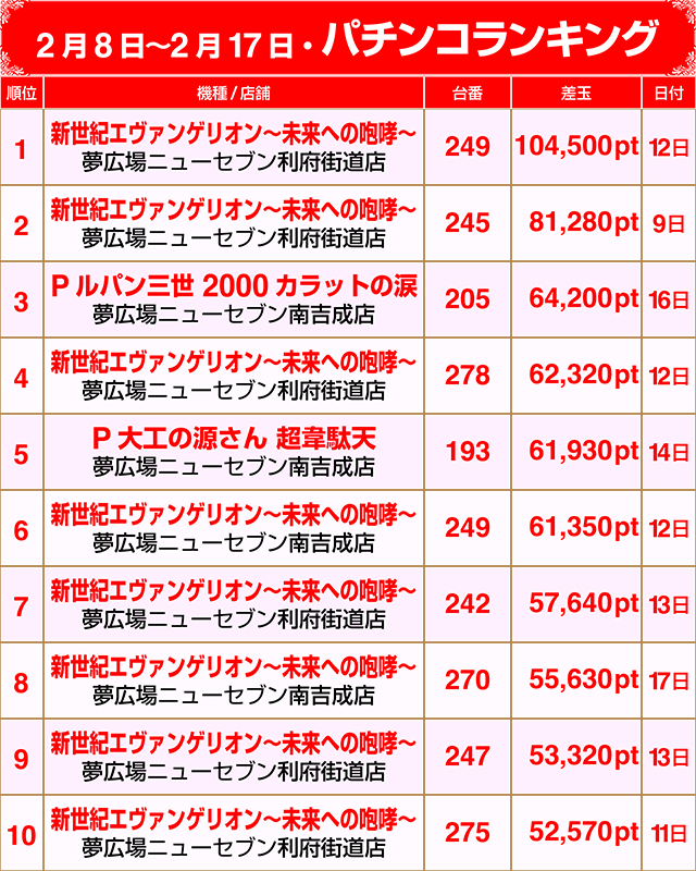 【パチンコ2月8日~2月17日ランキング】
