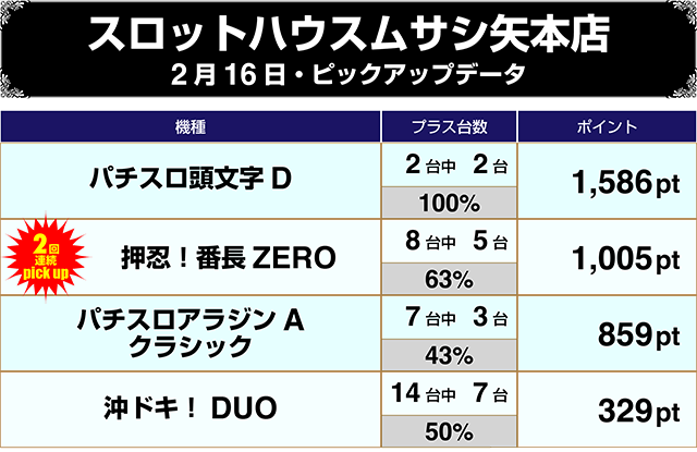 【2/16スロットハウスムサシ矢本店をピックアップ】