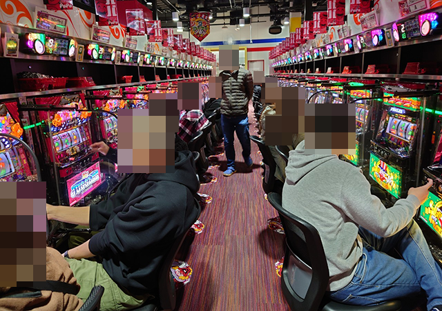 友人同士で談笑しながら遊技をおこなっている場面もあるなど、プレイヤーたちは楽しそうに過ごしていた。