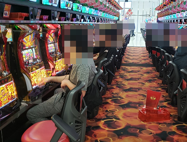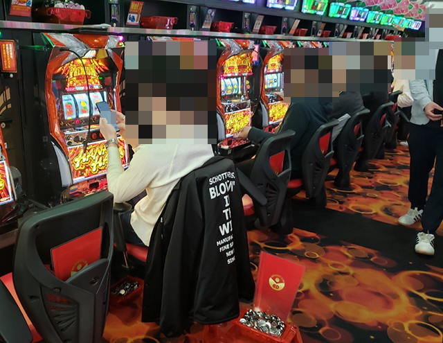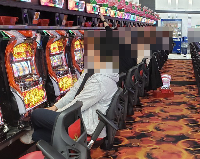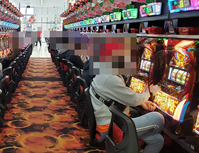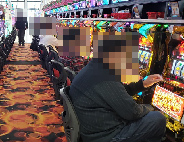14時半ごろにパチスロをみると、ハナハナシリーズがとくに盛況となっていた。