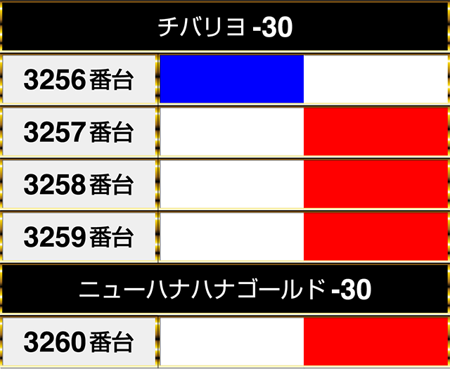 2機種を通してプラスptが並ぶ場所は、『チバリヨ-30』と『ニューハナハナゴールド-30』にもあった。