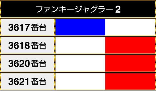 8台設置の『ファンキージャグラー2』も3台が連なってプラスpt!