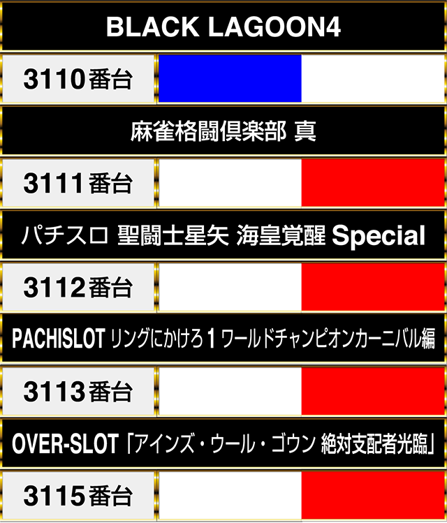 バラエティコーナーでは、『麻雀格闘倶楽部 真』の3111番台から『OVER-SLOT「アインズ・ウール・ゴウン 絶対支配者光臨」』の3115番台までが連なってプラスptとなった。
