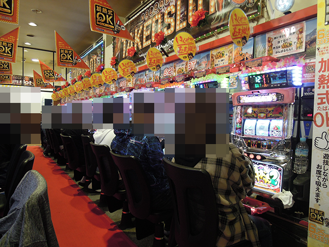 パチンコでも華やかなシーンがみられるなど、「パチンコ玉三郎竹尾店」にて、機種を問わずに遊技を満喫しているといった姿がみられた。