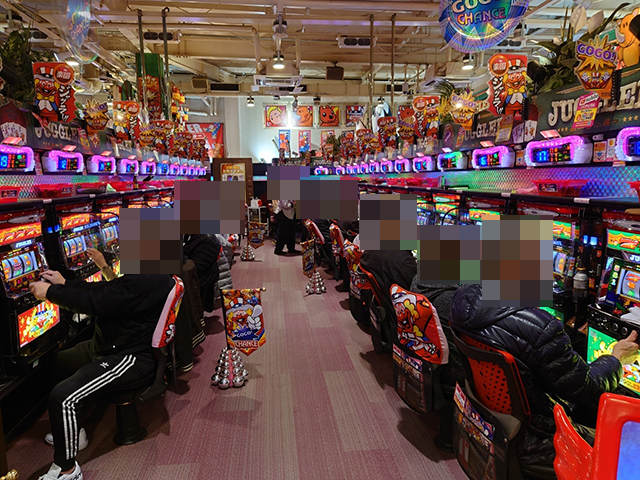 「ファンキージャグラー2」にもうれしそうに遊技をおこなっている姿があり、ジャグラーシリーズ全体が大にぎわいとなっていた。
