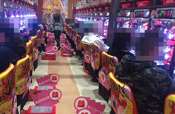 1円パチンコの人気も高く、海物語シリーズや遊パチなど、多数の機種に楽しそうなプレイヤーを確認できた。