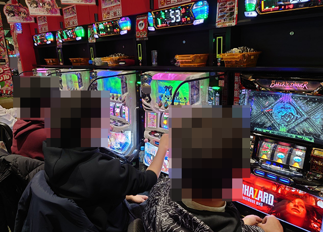 となりに設置された『パチスロ バイオハザード7 レジデント イービル』にも楽しげな姿があり、感じられる盛り上がりは大きい。