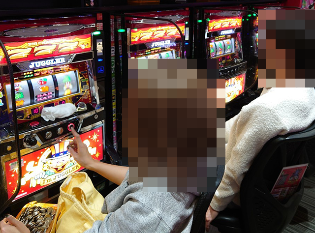 並びで設置された『マイジャグラーV』と『ファンキージャグラー2』も活気づいていた。