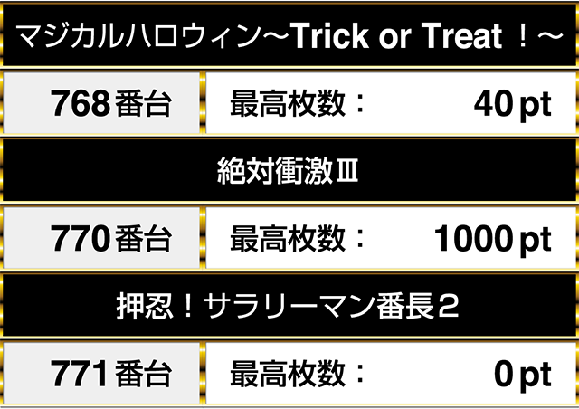 『マジカルハロウィン〜Trick or Treat!〜』や『絶対衝激Ⅲ』などが楽しまれているバラエティコーナーにもプラスptが連なる場所があった。