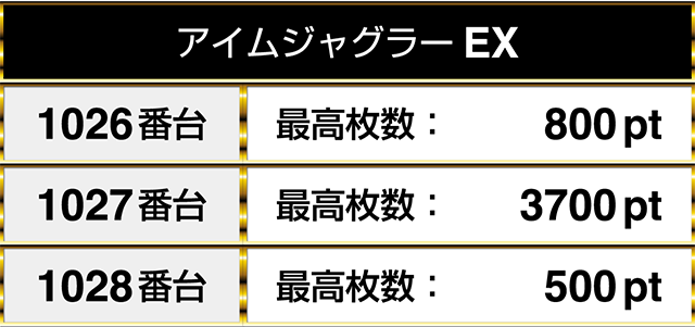 3700ptの台があった『アイムジャグラーEX』も3台が連なってプラスpt!!