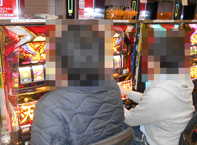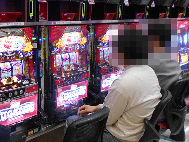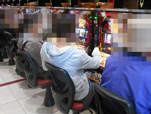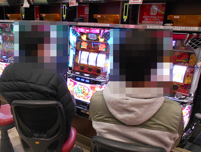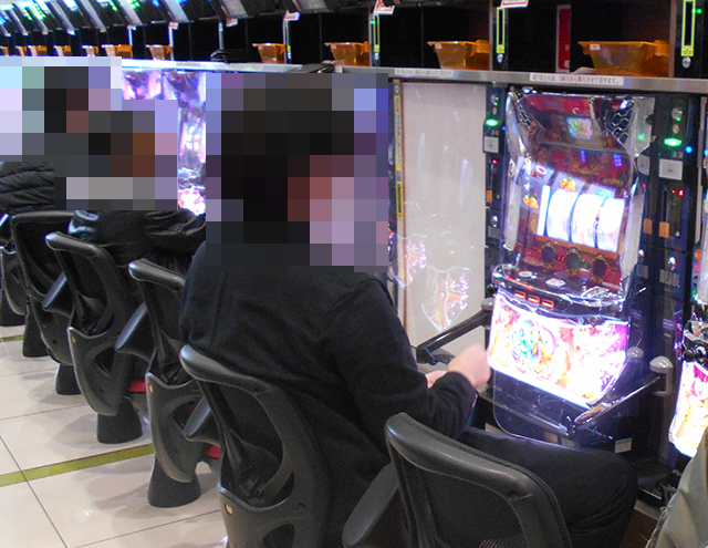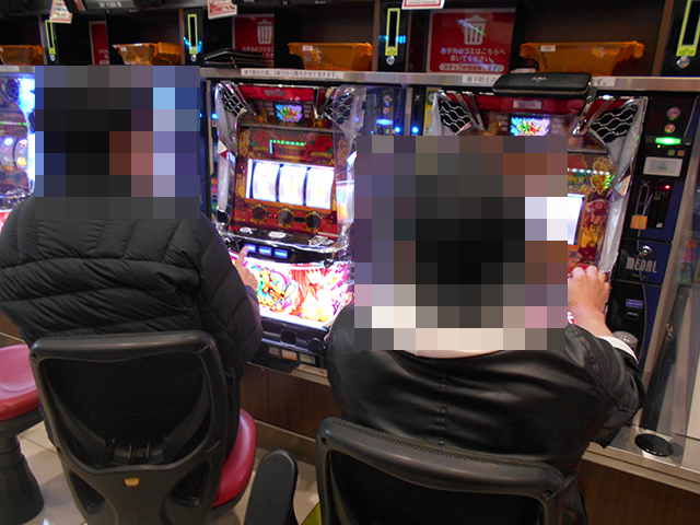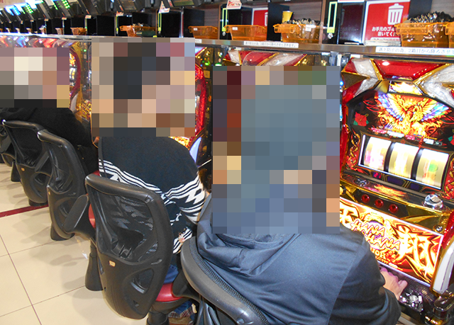 パチスロコーナーを明るく照らす光の原点をもとめて店内を歩いていると、さまざまな機種でうれしそうに遊技をおこなっている姿が目に入ってきた。