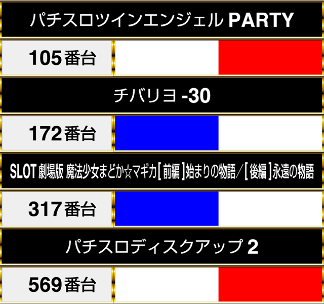 閉店時には『パチスロツインエンジェルPARTY』や『パチスロディスクアップ2』などがプラスptとなった。